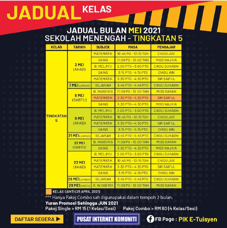 JADUAL E-TUISYEN MEI 2021