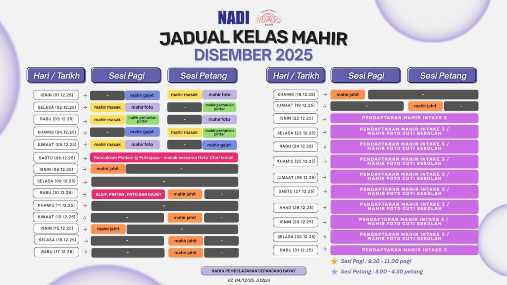 JADUAL KELAS MAHIR DISEMBER 2025